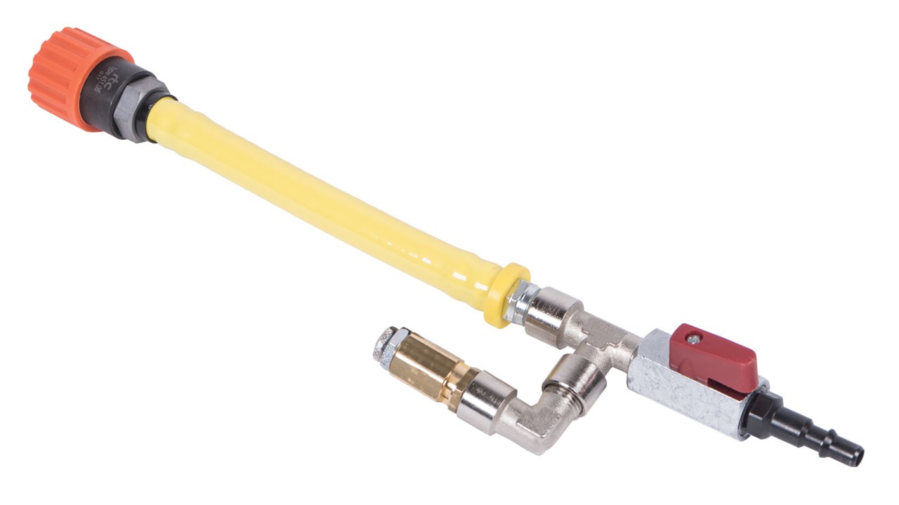 Ventilen placeras mellan kompressorn, eller luftflaskan, och manöverenheten. En manometerklocka för ingående luft och en för utgående. På båda klockorna är maxtrycket rödmarkerat.